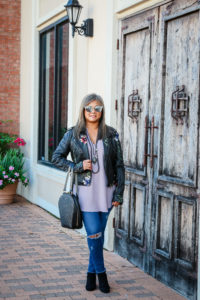 If the floral detail isn’t your thing then a simple leather moto jacket works beautifully with your wardrobe. I’ve linked a few here below.