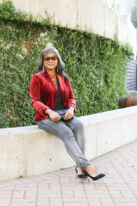 I am absolutely loving how the gray look is just as chic as wearing black. So, go ahead and purchase some gray jeans and have fun styling them.  I am all about the gray and as for me and my wardrobe, it is here to STAY!