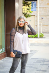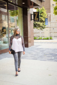 I first noticed the distressed wash on these “black” jeans, but the wash technique on it definitely makes it gray.  That was gives it a really pretty soft look.  I knew these jeans would be fun to go with all the pink and other neutral tops that I have been snatching up. Below I have rounded up three of my favorite looks and wanted to show you how gray jeans can add some elegance to your look.